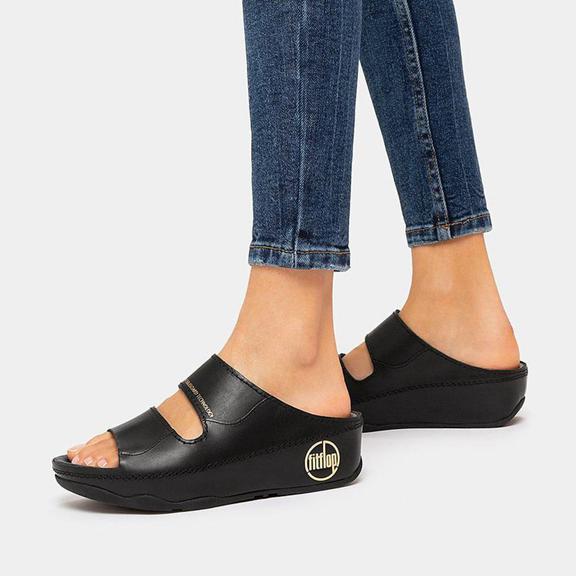 FitFlop Women's SHUV Leather Slides - Black (HUSRM-8694)