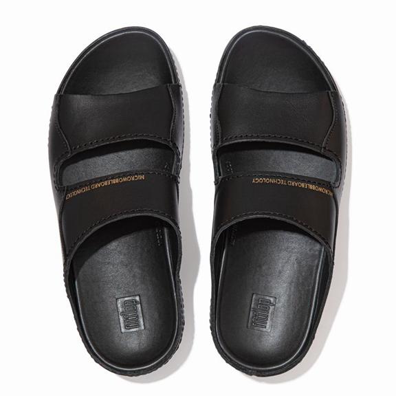 Home ::  Sandals ::  Slides ::  FitFlop Women's SHUV Leather Slides - Black (HUSRM-8694)