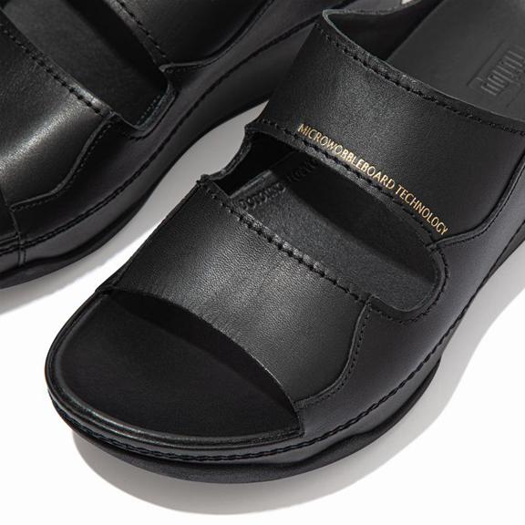 Understated style and perfect lines (with our legendary supercushioned Microwobbleboard™ midsoles underfoot), the Shuv two-bar slide is one of the styles that helped define the FitFlop brand. This limited edition version is an elevated spin on the original – think butter-soft all-leather uppers and linings, statement stitching, subtle gold-foil embossing – while celebrating everything that made this sandal such a smash the first time. A utilitarian-minimalist classic.