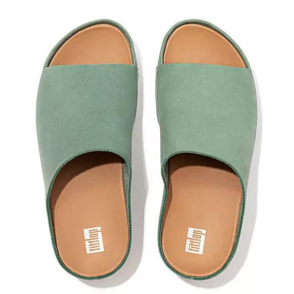 FitFlop Women's SHUV Nubuck Slides Shuv Clogs & Sandals - Bay Green (MTHCE-9172)