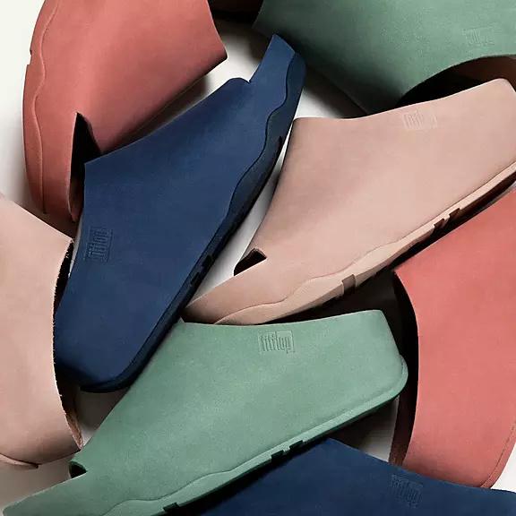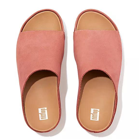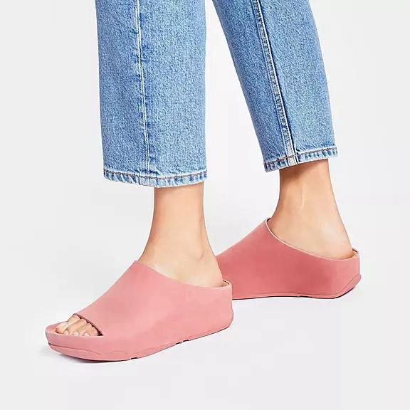 FitFlop Women's SHUV Nubuck Slides Shuv Clogs & Sandals - Rose (TQKAW-9145)