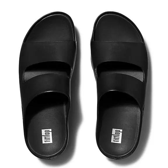 FitFlop Women's GRACIE Stud-Buckle Leather Slides Slip On Sandals - Black (HASOZ-3281)