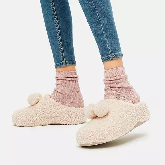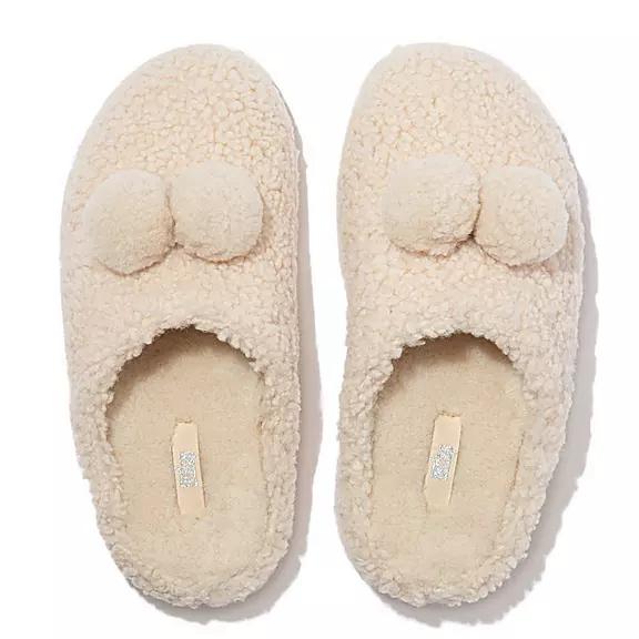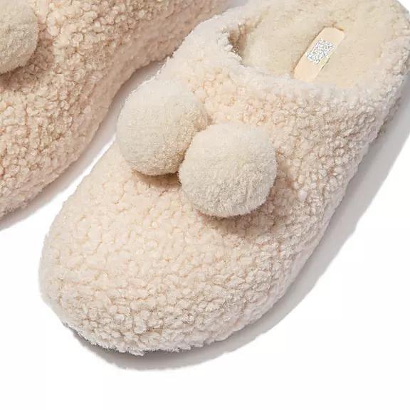 FitFlop Women's SHUV Pom-Pom Shearling Slippers Clogs - Ivory (IGMCS-2491)