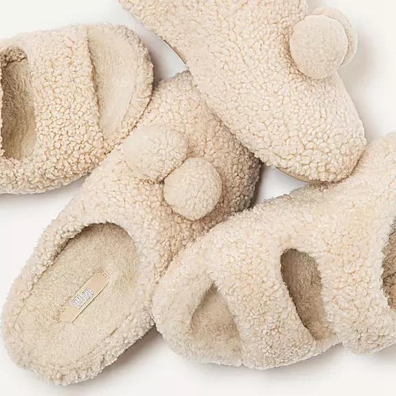 This crazy-fluffy reworking of our iconic cult clog – topped with pom poms – takes cush to the extreme. Crafted in deluxe ultra-soft curly shearling, inside and out, with a faux-fur footbed, for the ultimate plush slipper. On our all-day cushioning, triple-density Microwobbleboard™ midsoles, so you not only look like you're walking on clouds, you feel like it too. Not only ludicrously luxurious, these are must-have for cold toes. (With rubber outsoles so you can pop outside.)