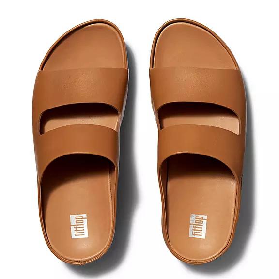FitFlop Women's SHUV Two-Bar Leather Slides Shuv Clogs & Sandals - Light Brown (PUAWV-8732)