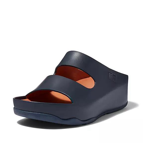 FitFlop Women's SHUV Two-Bar Leather Slides Shuv Clogs & Sandals - Midnight Navy (NZYEO-0465)