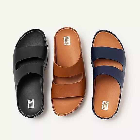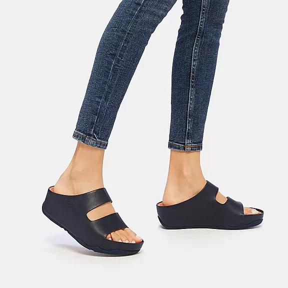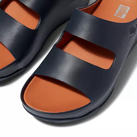 CA$134 CA$109FitFlop Women's SHUV Two-Bar Leather Slides Slip On Sandals - Midnight Navy (OZXKU-4709)