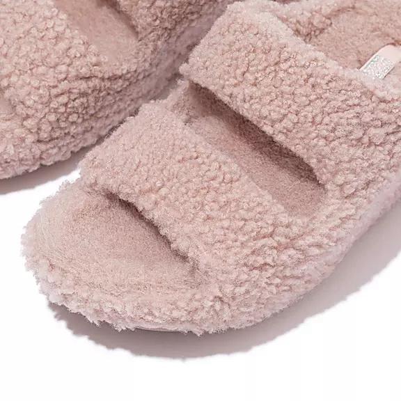 These crazy-fuzzy slides are as fabulous as they're fluffy. Crafted in deluxe ultra-soft curly shearling, inside and out, with a faux-fur footbed, for an irresistible mix of 'statement' and super cozy. On our all-day cushioning, triple-density Microwobbleboard™ midsoles, so you not only look like you're walking on clouds, you feel like it too. Wear yours as slippers or plush slides for around the house (with full rubber outsoles so you can pop outside).Sizing note: These Shuv slides have a little bit of initial stretch, so the fit feels slightly roomier. You may prefer to buy these a size smaller than you would normally buy.