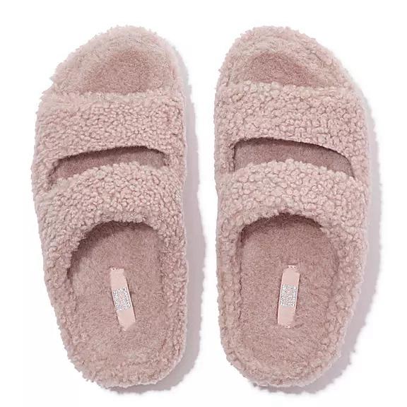 FitFlop Women's SHUV Two-Bar Shearling Slides - Soft Pink (OIPRD-1048)