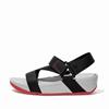 Simple, sporty-styled, a bit addictive, these sandals boast soft light z-strap uppers that let your toes flex free, an adjustable quick-stick-fastening back strap so they stay on, and our supercushioned Microwobbleboard™ midsoles for ergonomic walk-all-day comfort. This version has the logo subtly woven into the webbing and smart FitFlop-red detailing (check out the tab and outsole). Equal parts sports-chic and utilitarian, you'll wear them constantly.