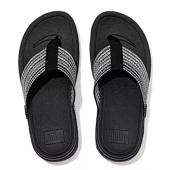 FitFlop Women's SURFA Toe-Post Wide Fit Sandals - Black Mix (QEWAM-9652)