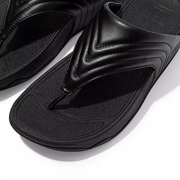 FitFlop Women's WALKSTAR Leather Toe-Post Wide Fit Sandals - Black (FQCXZ-2716)