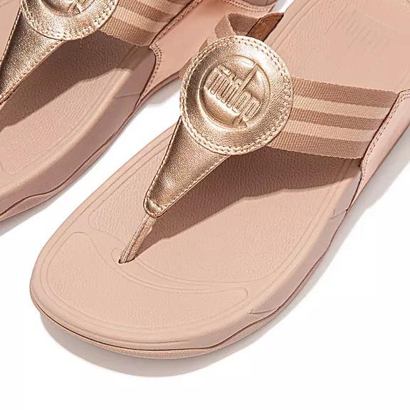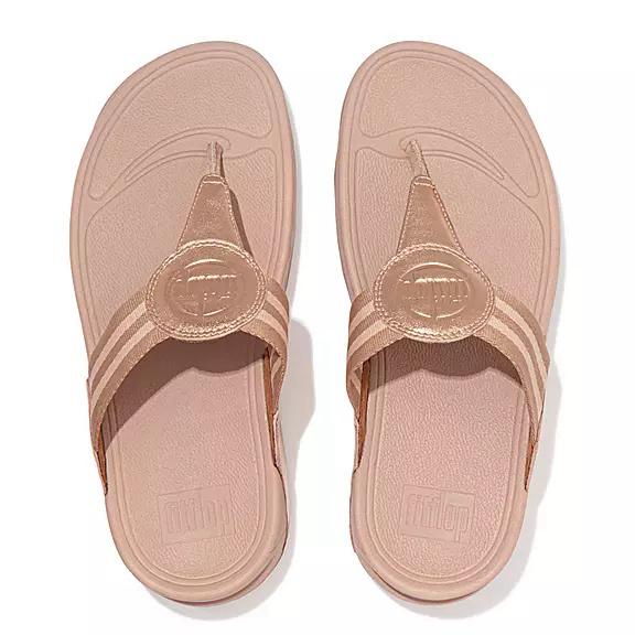 FitFlop Women's WALKSTAR Webbing Toe Post Sandals - Rose Gold (UJMTS-0294)