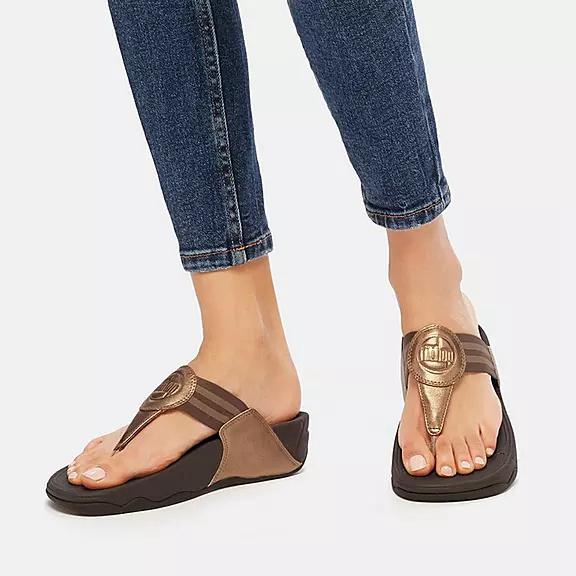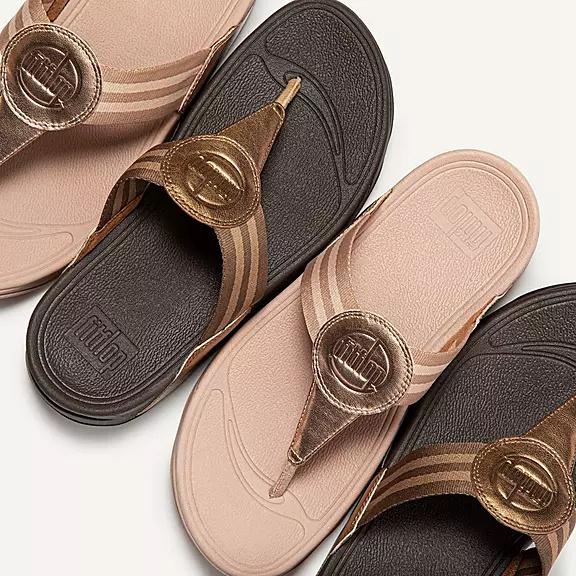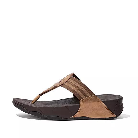 FitFlop Women's WALKSTAR Webbing Toe-Post Wide Fit Sandals - Bronze (TBPRQ-5607)