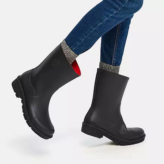 FitFlop Women's WONDERWELLY Short Rain Boots - Black (QXVJC-9305)